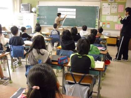 5年生の2時間目は、“英語活動”担任の先生と英語支援員の先生で授業を・・・。