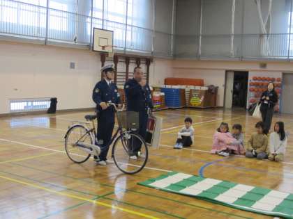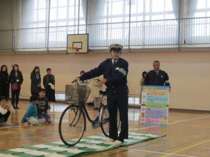 DVDを見て安全に乗る心得を知ったり、警察の方の実演による安全な乗り方を教えていただいたりしました。自転車の安全点検をし、正しい乗り方で事故なく運転してほしいです。