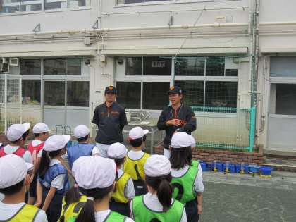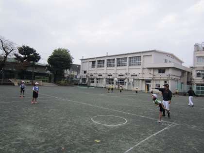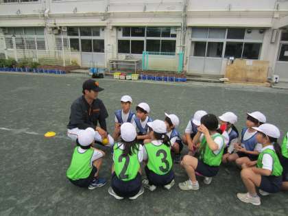 正しいボールの投げ方や取り方を学習した後、簡単なゲームをしました。教えていただいた投げ方のこつを生かして楽しくゲームをしていました。「投げるのがこんなに楽しいとは思わなかった。」と言う児童がいたほどとても充実した1時間でした。