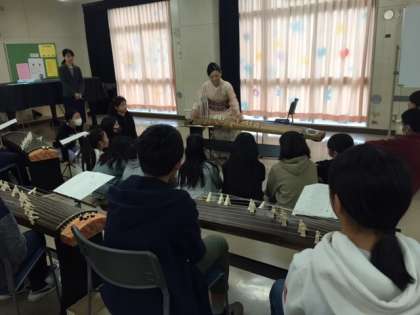 終わりには「六段の調べ」と校歌の演奏も聴くことができ、思わず歓声があがっていました。筝について、楽しみながらたくさん知ることができました。