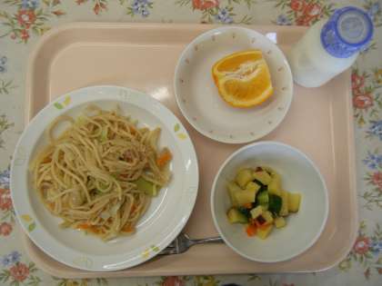 【献立】 キャベツとツナのスパゲッティ 牛乳