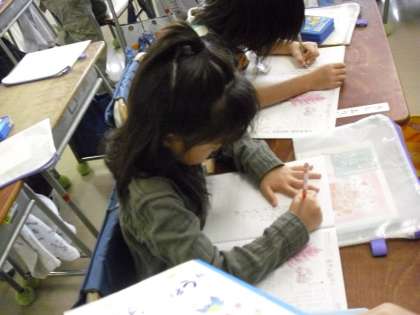 6年生のお手伝いグループは・・・学習のの予定を連絡ノートに書かせていました。書き終わった子どもには、読書をさせていました。