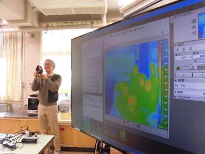 寒い季節を快適に過ごすヒントとなる実験や、サーモカメラなどを使ってお話をしていただきました。子どもたちは、寒いときの「服の着方」や「住まい方」を考えていました。