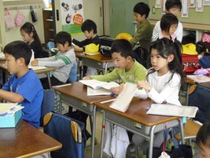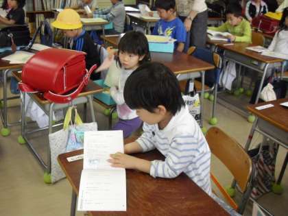 朝の会が始まる前に・・・学習用具をランドセルから机の中に・・・ランドセルはロッカーへ・・・みんなが準備している間に、朝の会で読む詩を自主的に読んでいる子もいました。そして、“朝の会に・・・”