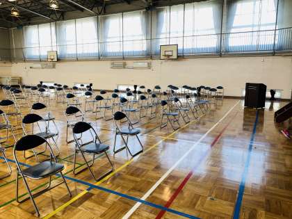 今日は卒業式をどのようにするとよいのか、何人もの先生方が一緒に考えてくださいました。体育館にイスを並べてみると、そこに皆さんが座っている姿が頭の中に浮かんできました。