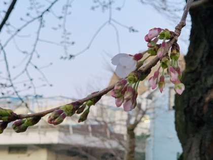 校庭の桜のつぼみも少しずつふくらみ始め、今日はきれいな花も見つけました。皆さんがまた登校をし、卒業式を迎える時にはきっと満開の桜が迎えてくれるはずです。