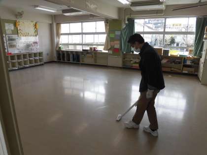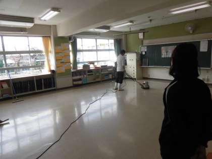 きょうはしゅじさんがみんなが1年かんつかったきょうしつ、そしてらい年の1年生がつかうきょうしつのそうじをしてくれています。
