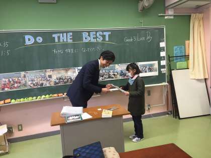 4月からはいよいよ4年生。また、新学期に元気で会いましょうと、クラスメートや担任の先生とお別れをしました。
