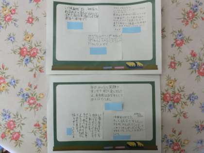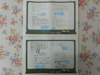 4年1組からのメッセージです。名前は隠してあります。「誰のメッセージかな
