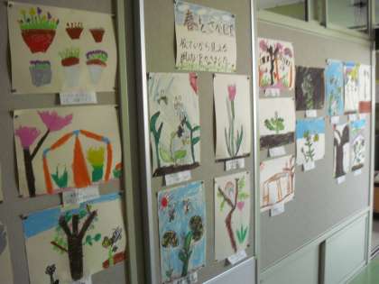 朝の会を始める前の様子と図工の作品の掲示・・・。