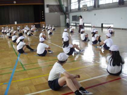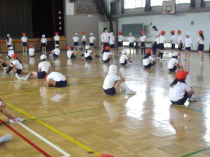 3時間目は、体育館で・・・運動会で踊る“表現”の練習をしました。