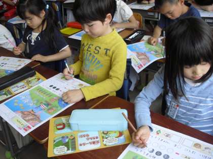 初めての算数のテストをしました。先生から、どのように進めていくか・・分かりやすく説明を聞いてから・・・始めました。みんなよくできていたようです。