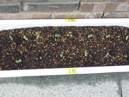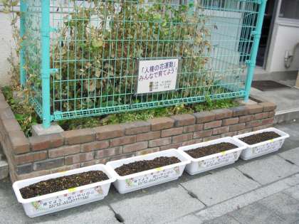“人権の花”の担当の先生からの話です。1年生が植えたプランターに“二葉”出ました。優しくお世話をすると・・・きっと、きれいな花が咲きます。と、担当の先生から、全校の児童に話がありました。また、廊下にも“人権の花”コーナーも作りました。