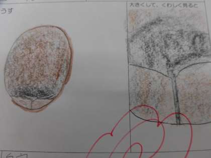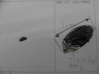 下に観察カードをのせてあります。ちょっと色のちがうところ、特ちょうのある形を見つけた子もいて、細かいところまで観察しているなと感心しました。