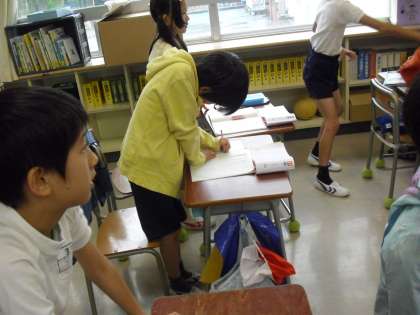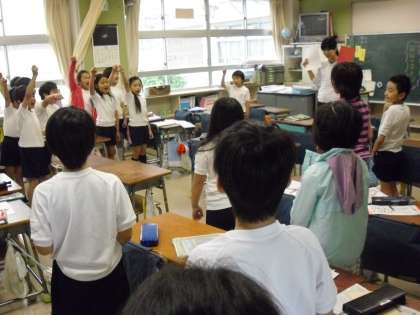朝の会が終わり・・・“運動会の歌”・・・・紅白応援歌を練習・・・紅白に分かれて大きな声で気持ちを込めて歌っていました。