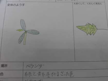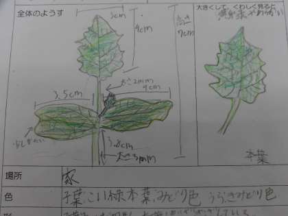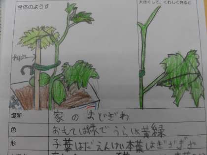 観察カードには、本葉が出てきてどんどん生長している様子が記録されていました。