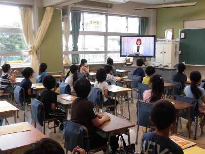 児童朝会は生憎の雨でしたが、テレビ放送にて始業式の内容もかねて実施できました。