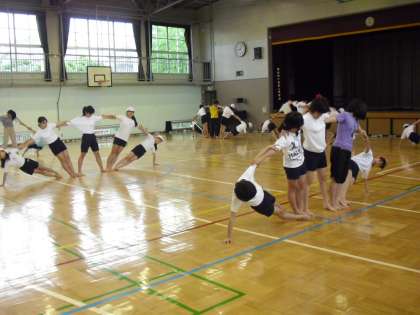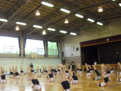 “組 体操”の確認 ・・・ 今日は、ピラミッド、タワーがすべてできました。