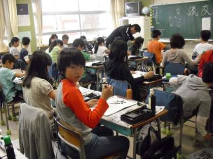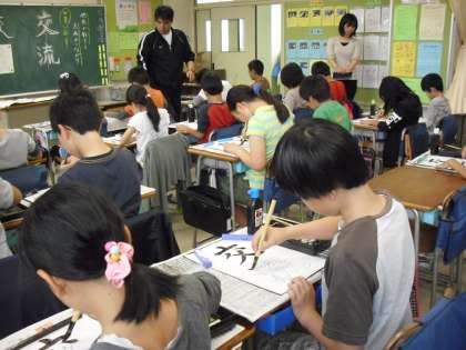 “習字:交流”・・・書き順や字の形・・・・バランスなどを考えて書いていました。
