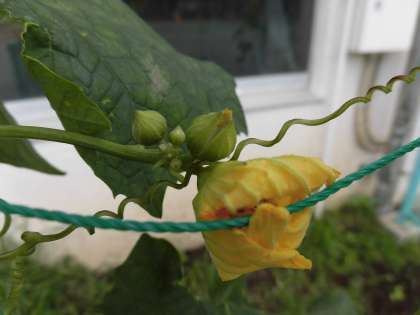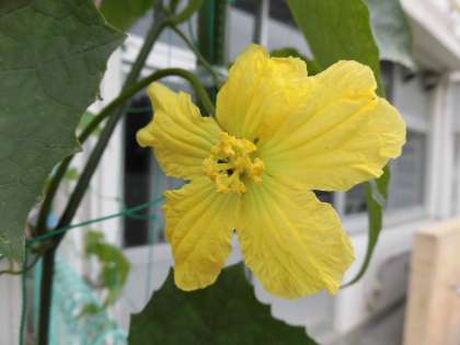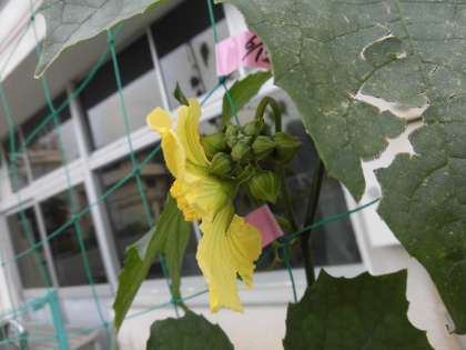 朝ヘチマを見に行くと、黄色い花がさいていました。