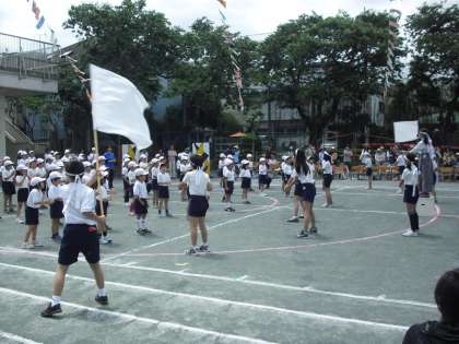“応援合戦:エールの交換・運動会の歌”・・・と続きます。今年の応援団長は、紅白共に女子です。・・・