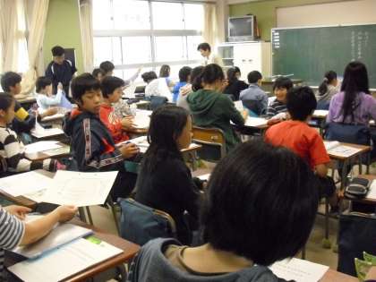 1時間目は、“英語活動”担任の先生と英語支援員さんが指導し当たっています。