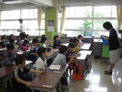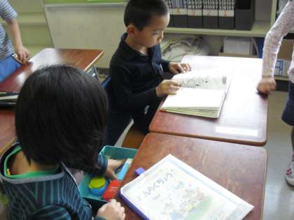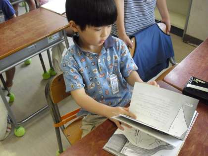 “朝 読書タイム”で自分の読みたい本を読んでいました。そのあと・・“朝の会”リーダーが前に出て・・・“音 読”・・・声もよく出ていて、上手でした。
