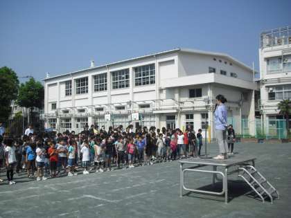 全校児童朝会がありました。九品仏の子どもたち、教職員の頑張りの話・・・悩んだら先生“担任、専科、少人数、SC、主事さん、副校長、校長”たくさんの相談相手がいます。・・・と校長先生からの話。