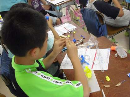 4年生の5・6時間目は、“理科の学習”・・・教育実習生の授業でした。“電気のはたらき”・・・“電気の通り道を作って、モーターを回転させよう”・・・実験道具を作りながら・・・電気の通り道を考えていました。
