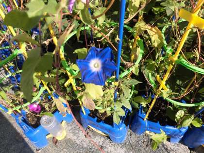 今朝、登校してきた1年生が「まだ咲いてるね!」と教えてくれました。久しぶりに暑さを感じた今日。たくさんのあさがおの花が職員室前に開いていました。先週、あさがおの種をたくさん取った1年生。まだまだ「種取り遊び」ができそうです。