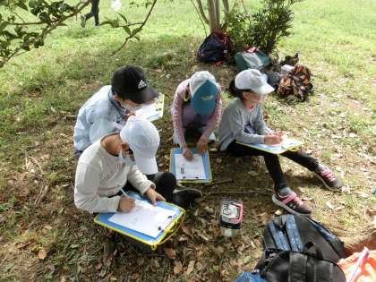 1学期にモンシロチョウを育てて、昆虫の学習をした子ども達は、「他の虫も、モンシロチョウと同じ体のつくりなのか」「いろいろな虫が実際に動いている姿を見てみたい」「虫はどのようにつかまえるのだろう」など、一人一人めあてをもって虫取りに行きました。虫が好きな子も苦手な子も、班の中で役割を見つけながら、協力してチョウやバッタ、コオロギなど様々な種類の虫をつかまえていました。その後、体の形や動きを注意深く観察しました。