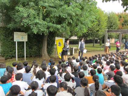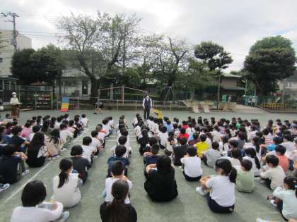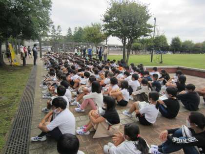 月曜日は、家庭科室からの出火を想定した避難訓練でした。今月は、校庭に避難した後、学校にいることが危険と判断した場合を想定して、2次避難所へ行く訓練をしました。子どもたちはとても真剣に訓練に取り組んでおり、さっと避難することができました。