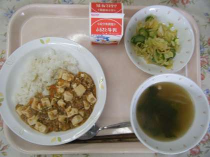 【献立】 麻婆豆腐丼 牛乳
