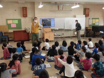 始めに、たねが運ばれている様子や、その仕組みについてお話を聞き、動物の体についたり、風に飛ばされたりと、身近な場面でたねが運ばれていることを知りました。