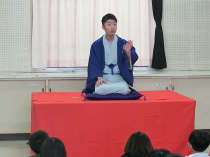 最後に落語を実演していただきました。子どもからお年寄りまで、様々な人物を生き生きと演じる話術に惹きつけられ、笑いがあふれたあっという間の一時間でした。