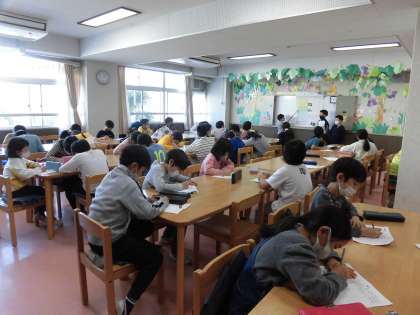 今日は、自分の担当以外のお店の様子を知ることができるので、こどもたちは、とても楽しみにしていました。それぞれのお店でされていた色々な工夫は、どれもお客さんに喜んでもらうために工夫であることが分かりました。また、お店の方々は、「お客さんの笑顔が見られると自分もうれしい」とおっしゃっていて、お客さんと「もの」だけでなく、「心も」やりとりしていることを知ることができました。