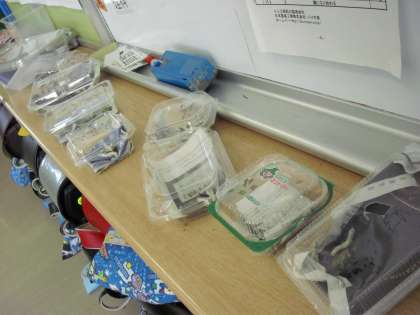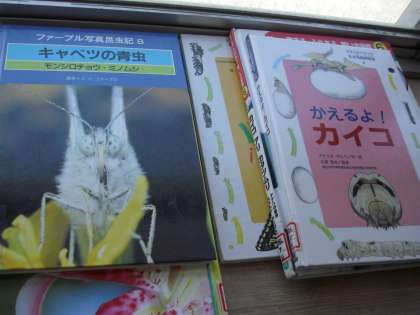 “朝の会:先生の話”・・・みんな集中して聞いていました。後ろには、飼育しているむしなどがあり・・・育て方の本もありました。