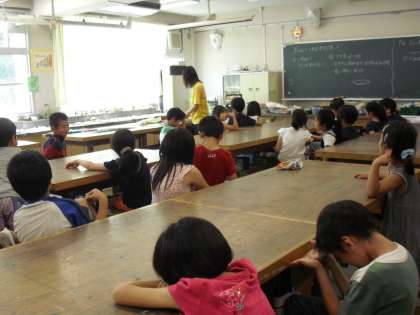 “専科授業:図工”題材は、“たのしいつかえるマグネット”・・・先生の説明を真剣に聞いていました。