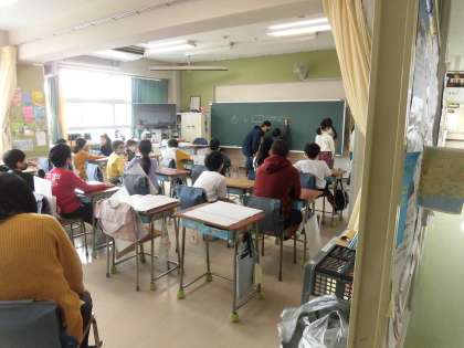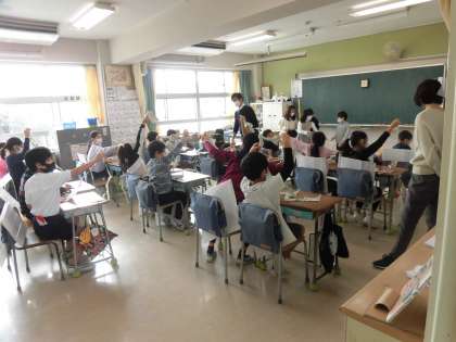 今年はコロナウイルスの感染拡大防止のために、部屋で行う遊びも工夫しました。机を下げずに席について行う遊びを考えた班もありました。