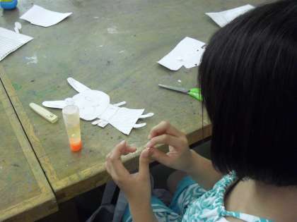 1・2時間目は、“専科授業:図工:紙はん画の主役を作ろう”に挑戦していました。