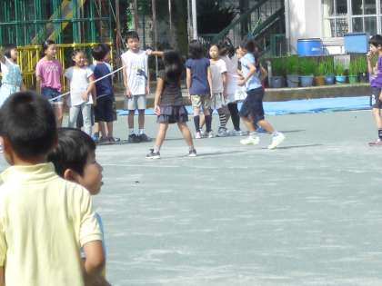 7月5日(火)穏やかな九品仏小の朝:長なわとび