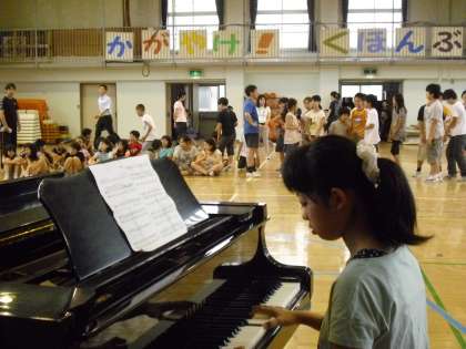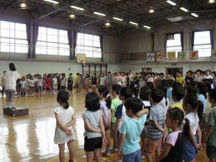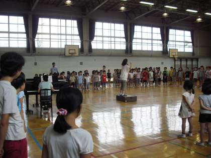 今朝は、“全校音楽集会:ほしまつりを歌いました。”声の出し方の指導を音楽の先生に受けて声がスムースに出てきれいな声で歌いました。ソプラノ、アルトに分かれて歌い、体育館中に歌声が響きました。九品仏の子ども達の願いがかなうといいと思います!