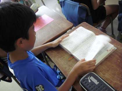 朝の会・・・先生に話・・・朝の会の前に・・・国語辞典で調べてる子どもいました。