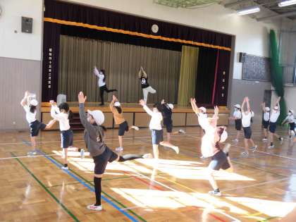 始めは慣れない動きに戸惑っていた子も、分かりやすく教えていただいたおかげで、少しずつ踊り方を覚えることができました。曲に合わせて踊れるようになると、リズムにのって踊りを楽しみ、動きが大きく、キレのあるものになっていました。1時間たっぷり体を動かし、心地よい疲れを感じていました。