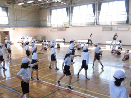 2・3時間目にエイベックスエンタテインメントの方をゲストティーチャーにお迎えして、「おーい せたがや」オリジナルダンスの「ひろがれ、せたがや」の踊り方を教えていただきました。