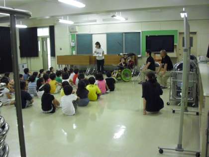 九品仏小の学区にいる光明特別支援学校に通っているお友達がいます。BOPにも週2回きています。そのお友達と2年生が紹介集会をしました。学校の紹介や学校での学習などをコーディネーターや担任の先生から説明があり・・・気をつけることや得意なことをお話ししました。“もうじゅうがりに行こうよ!”や歌を歌い・・・ひとときを持ちました。
