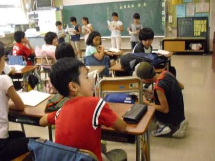 上の画面・・・3年生“国語科:うさぎのさいばん:音読発表会”・・・