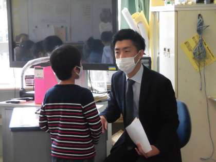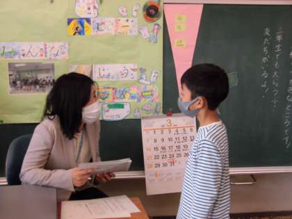 今年度最後の成績表を渡す様子です。