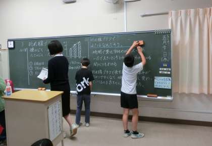 今週からスタートしている教育実習生が、4年2組で算数「折れ線グラフ」の授業を行いました。緊張もあり、なかなか思ったようにはいかないようですが、終えた後には優しい声かけをしてくれる子どもたちが多く、この子たちのために、さらによい授業が行えるようになりたいと思ったようでした。