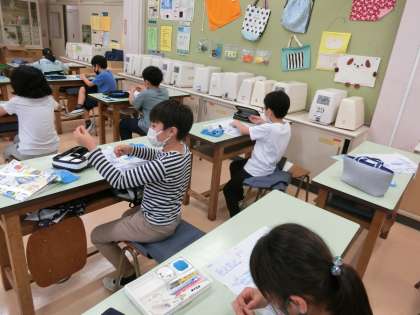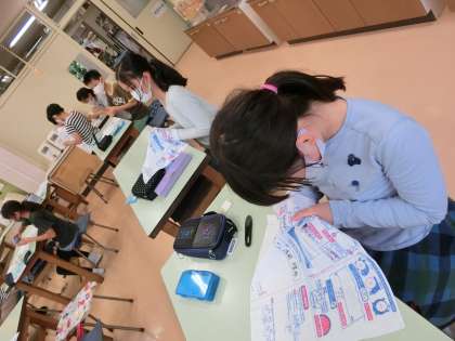 「ひと針に心をこめて」の学習です。前時も行いましたが、玉結び・なみぬい・玉どめを行いました。前は玉結びに苦戦していましたが、家庭でも練習したようで、今日はずいぶん上手にできていました。